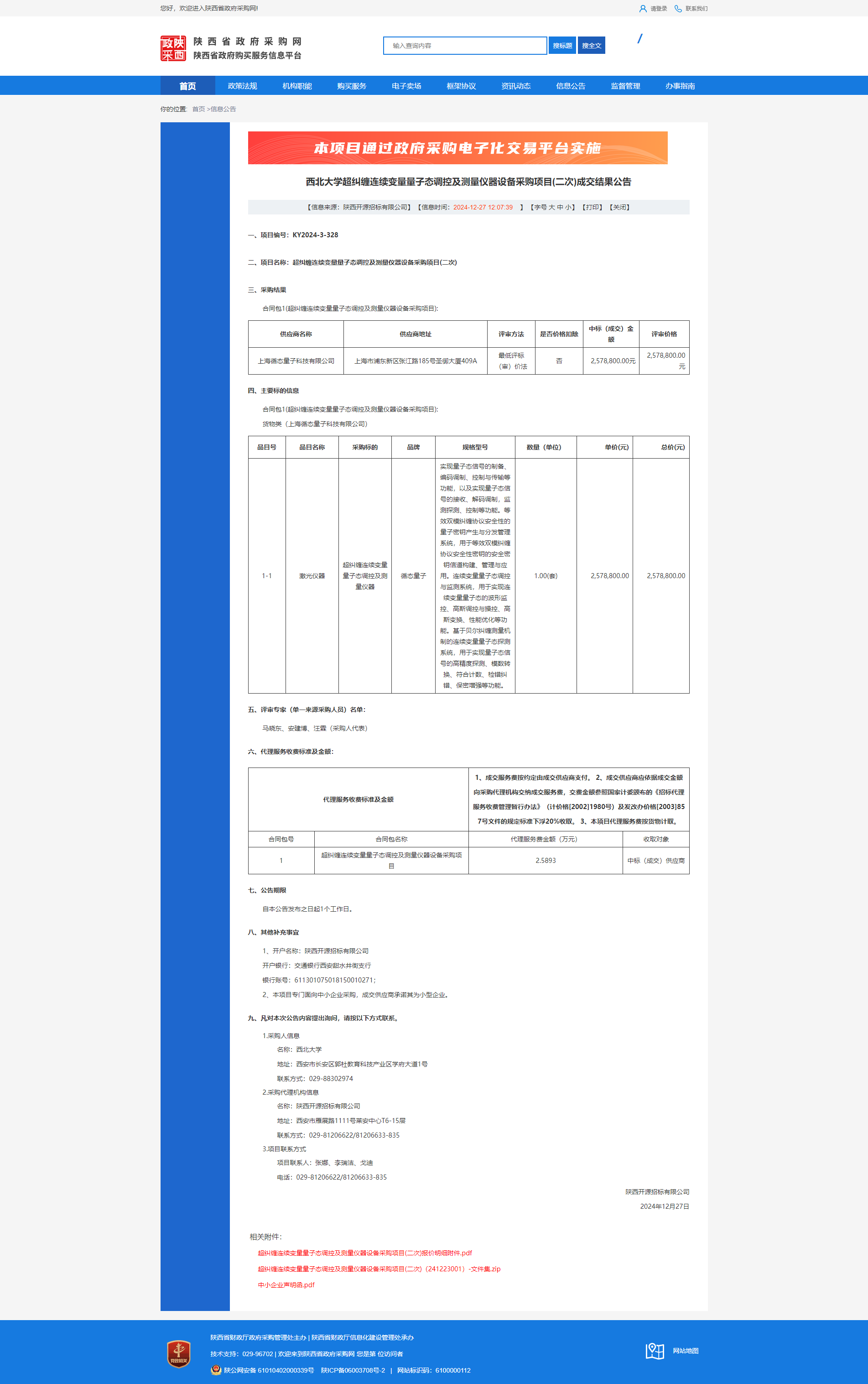 乐动网页版登录入口超纠缠连续变量量子态调控及测量仪器设备采购项目(二次)成交结果公告
