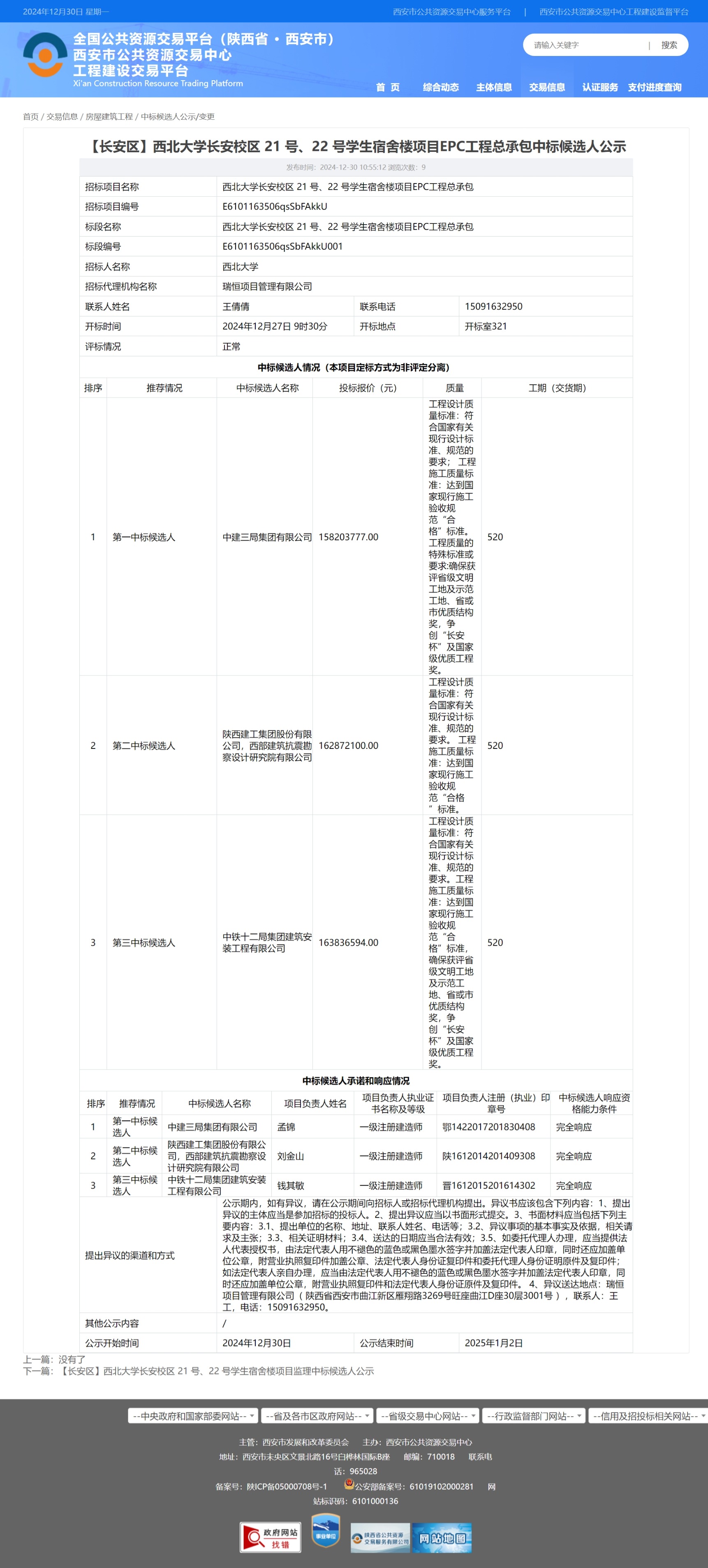 乐动网页版登录入口长安校区 21 号、22 号学生宿舍楼项目EPC工程总承包中标候选人公示
