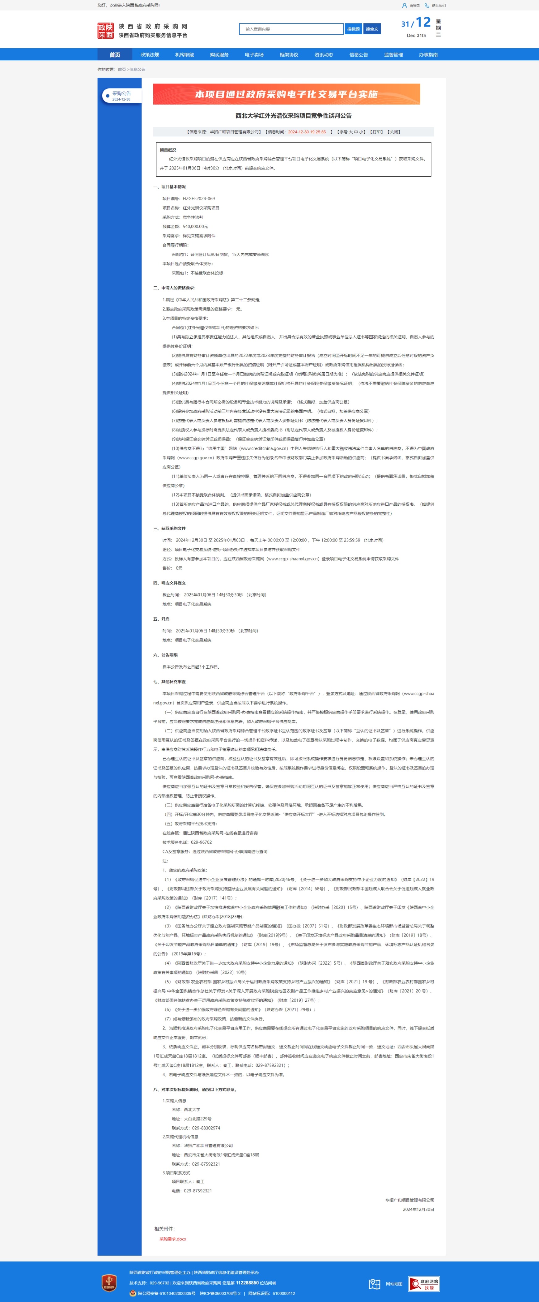 乐动网页版登录入口红外光谱仪采购项目竞争性谈判公告 作者: 编辑:薛利娟 时间:2024-12-31 原公告链接:https://www.ccgp-shaanxi.gov.cn/freecms/site/shaanxi/ggxx/info/2024/8a69c251921857370194174168cb49b9.html?noticeType=001013¬iceId=7e09294d-c6a2-11ef-8063-08c0eb20c666