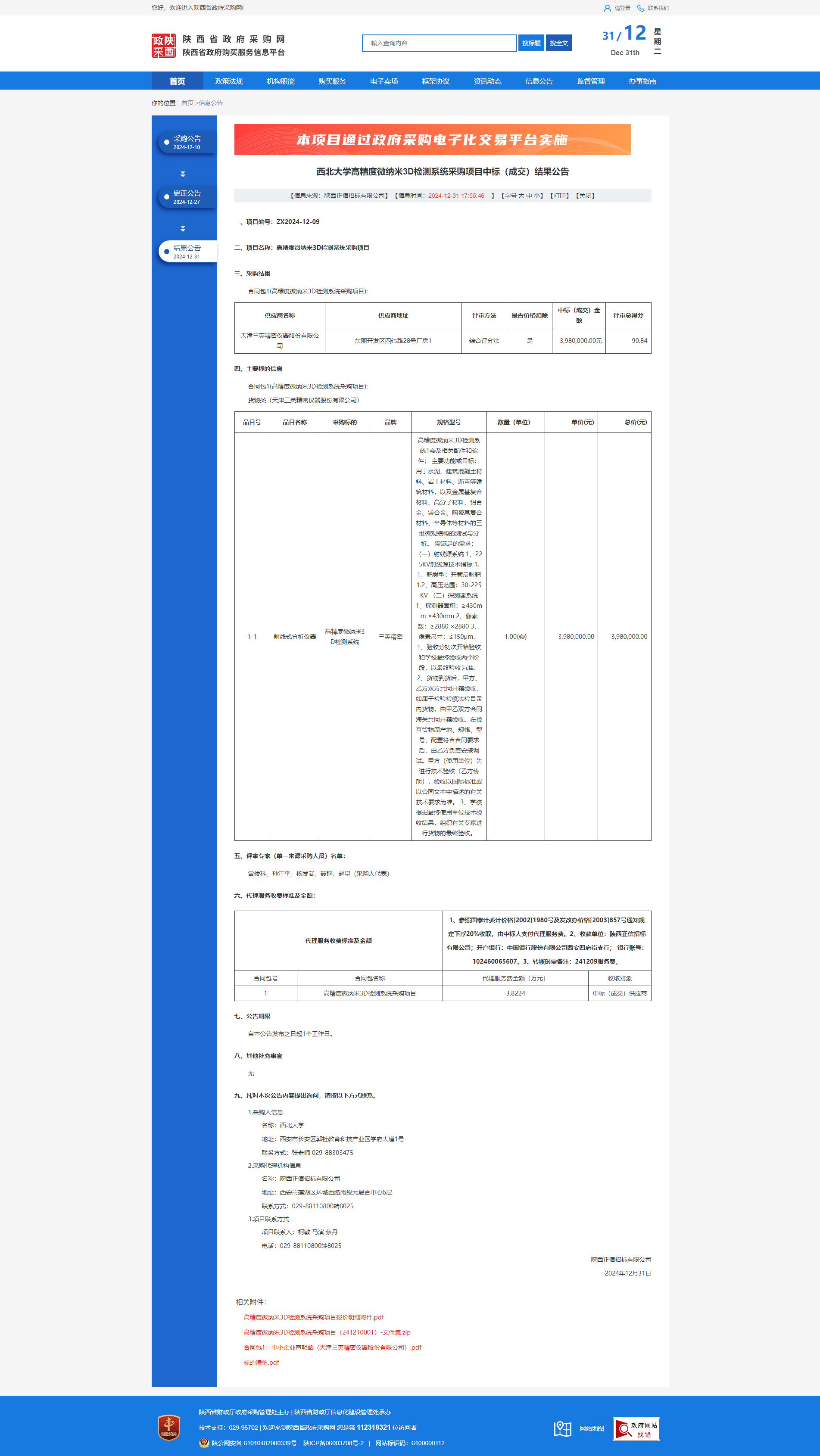 乐动网页版登录入口高精度微纳米3D检测系统采购项目中标(成交)结果公告