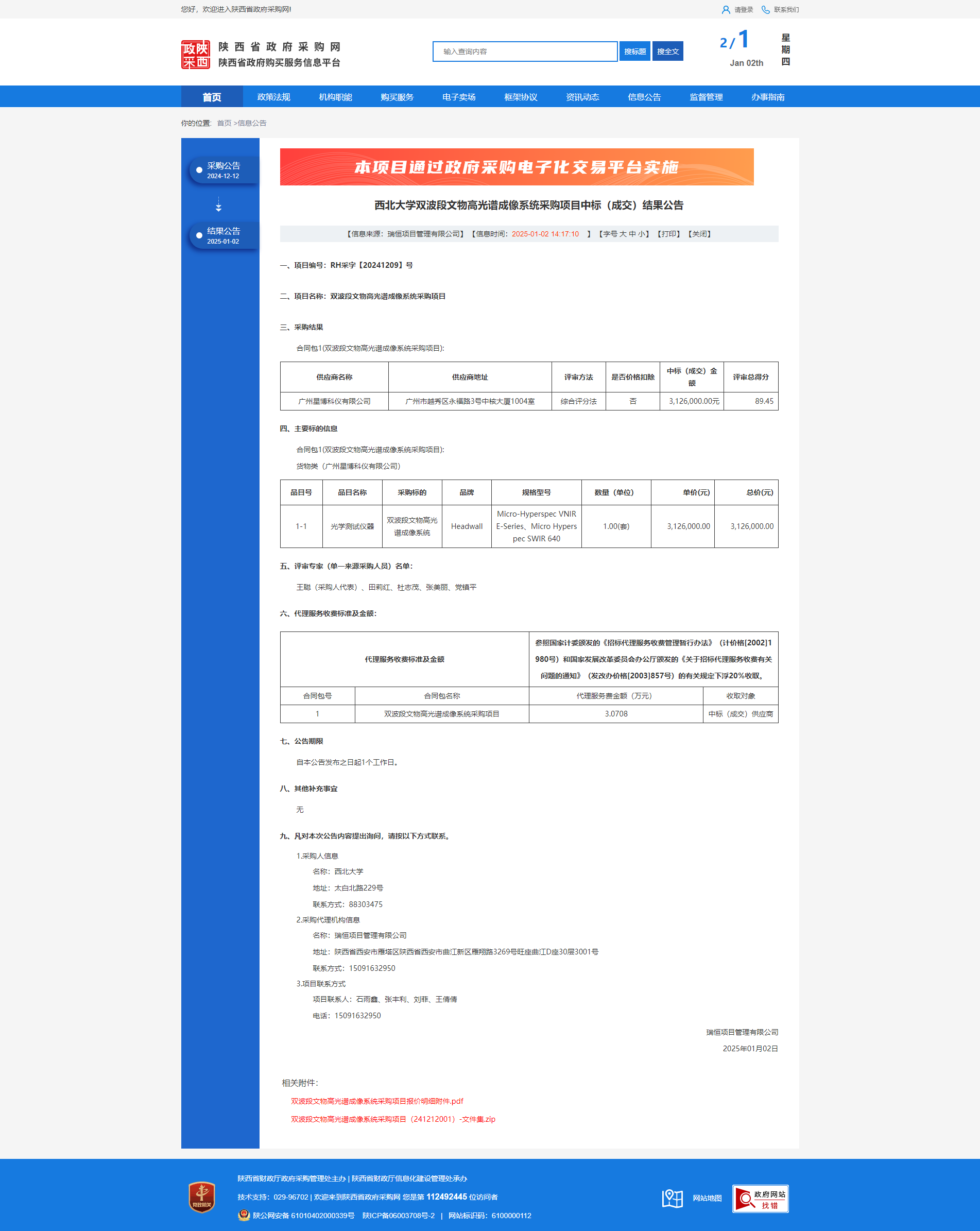 乐动网页版登录入口双波段文物高光谱成像系统采购项目中标(成交)结果公告