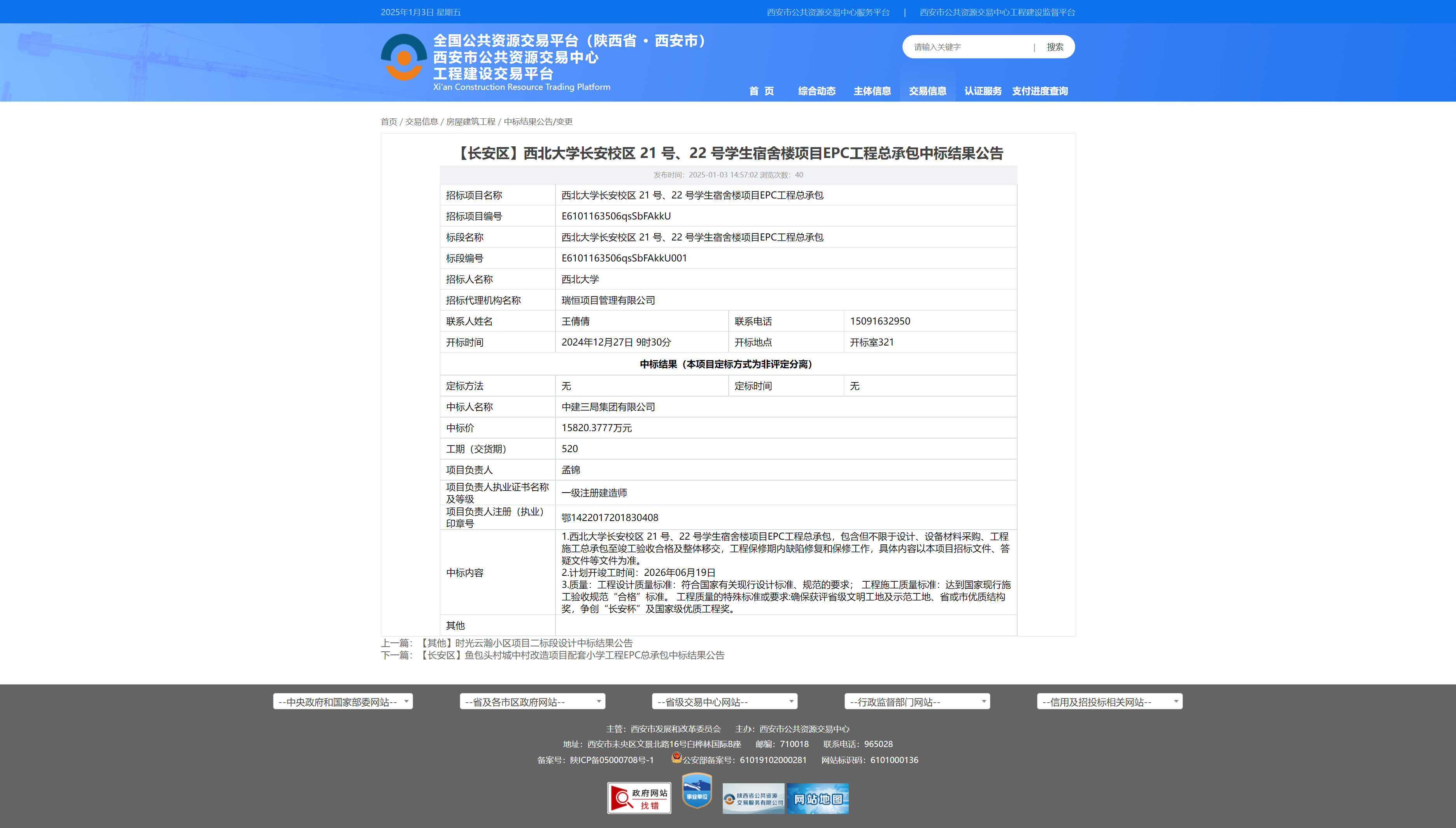 乐动网页版登录入口长安校区21号、22号学生宿舍楼项目EPC工程总承包中标结果公告