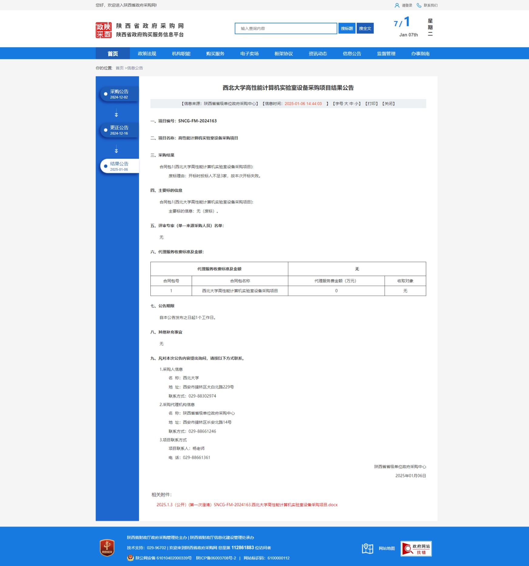 乐动网页版登录入口高性能计算机实验室设备采购项目结果公告 作者: 编辑:薛利娟 时间:2025-01-07 原公告链接:https://www.ccgp-shaanxi.gov.cn/freecms/site/shaanxi/ggxx/info/2025/8a69c95d921859f001943992fed82bb1.html?noticeType=001006¬iceId=49269ef4-cbfb-11ef-8063-08c0eb20c666