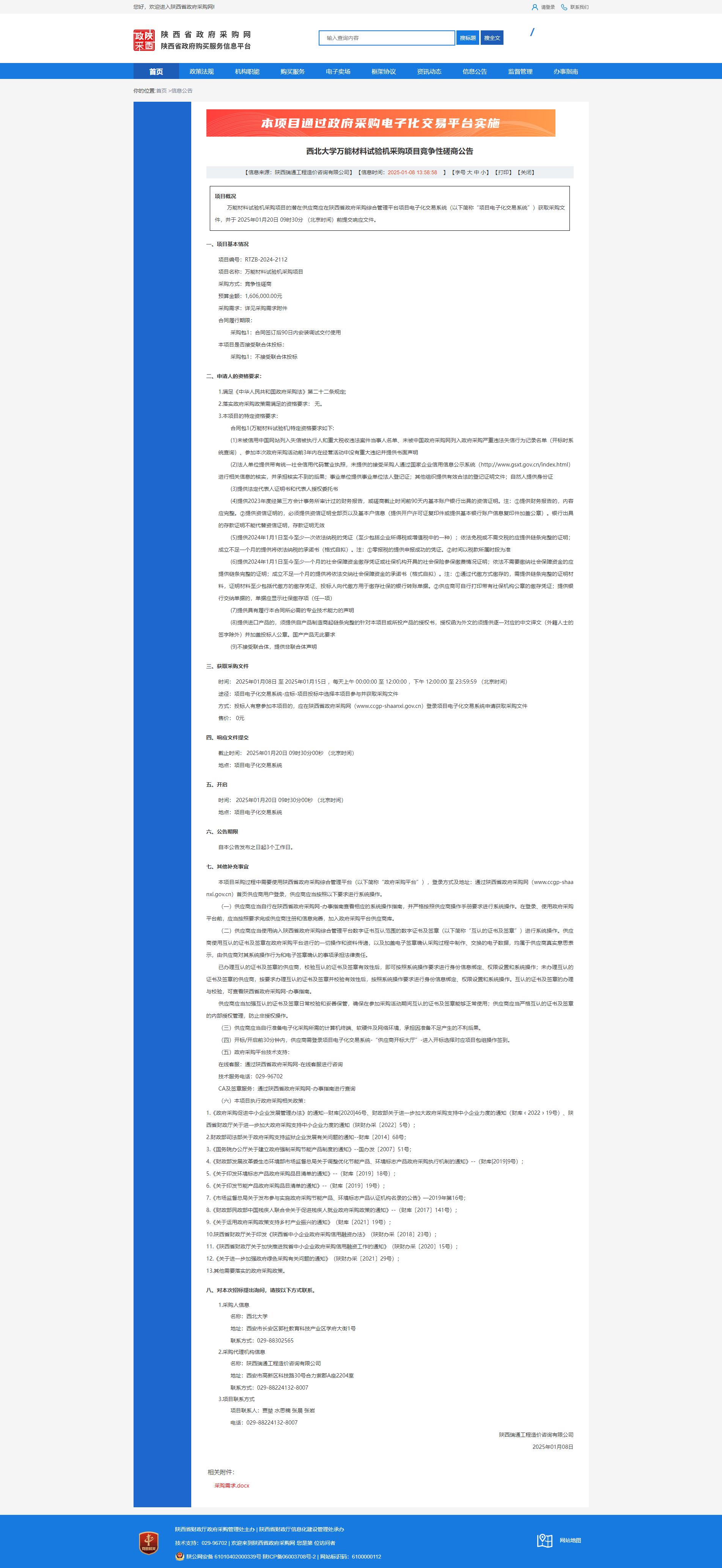 乐动网页版登录入口万能材料试验机采购项目竞争性磋商公告