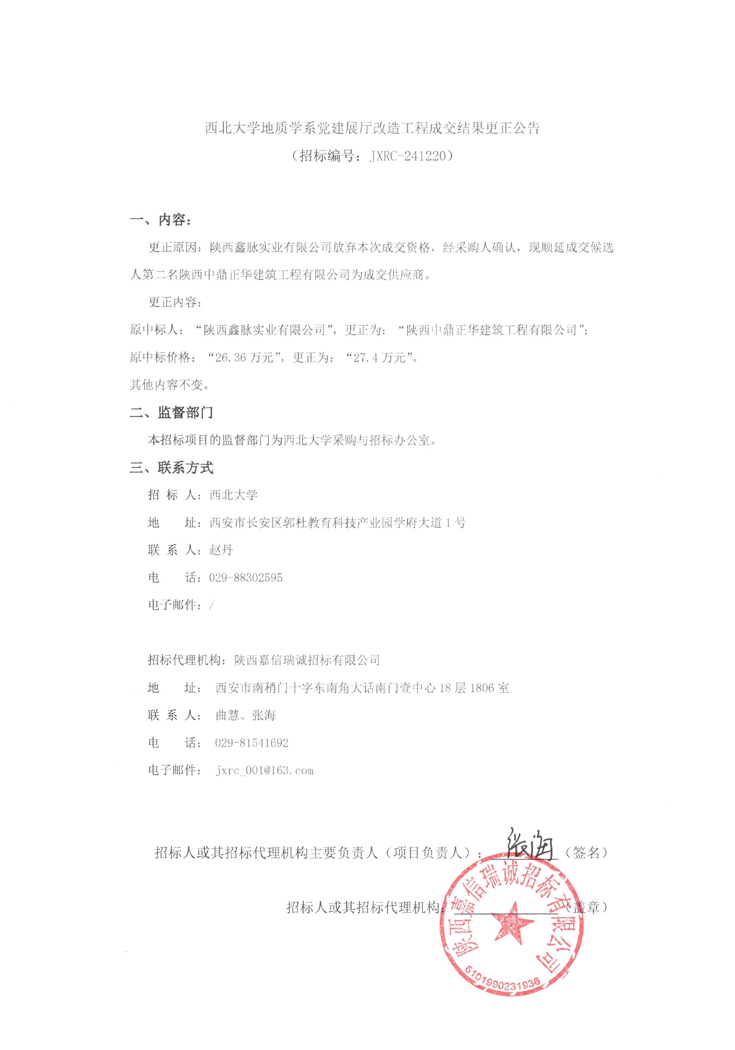 乐动网页版登录入口地质学系党建展厅改造工程成交结果更正公告