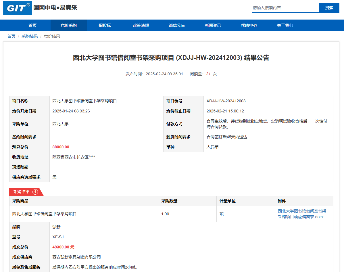 乐动网页版登录入口图书馆借阅室书架采购项目(XDJJ-HW-202412003)竞价结果公告 作者:采购与招标办公室 编辑: 时间:2025-02-24 原公告链接:https://www.ejingcai.com.cn/site/bidding/detail/16596