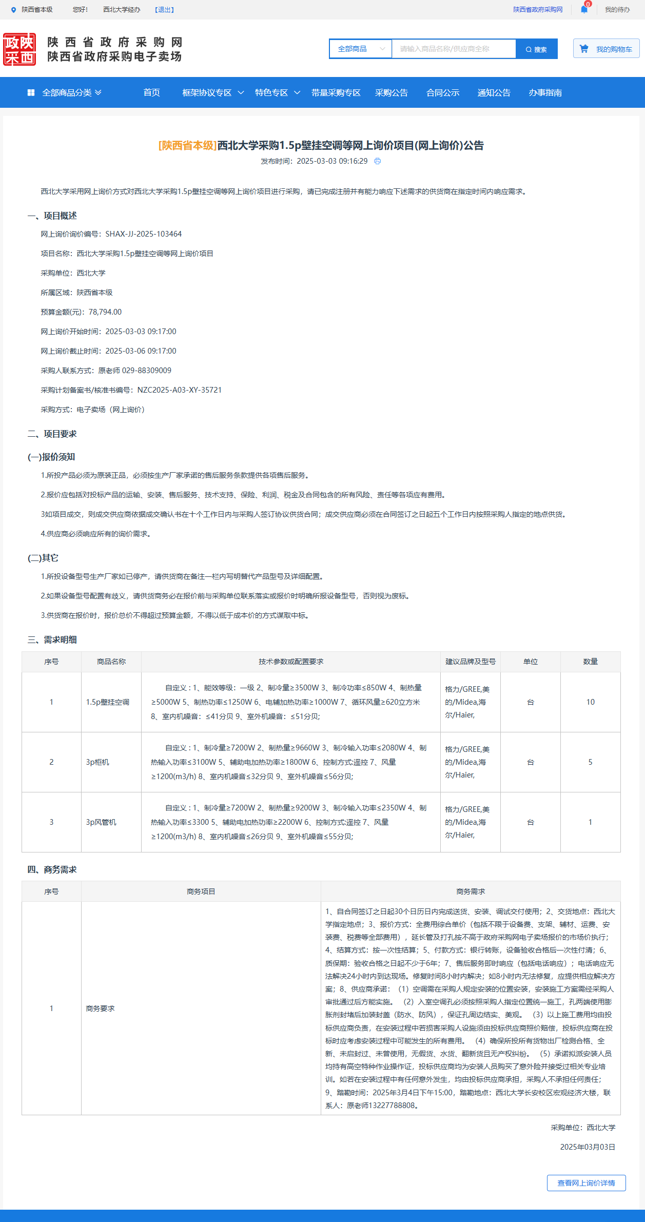 乐动网页版登录入口采购1.5p壁挂空调等网上询价项目(网上询价)公告 作者:采购与招标办公室 编辑: 时间:2025-03-03 原公告链接:https://www.ccgp-shaanxi.gov.cn/gpmall-main-web/basic/noticeDetail?noticeGuid=7295516810999431168