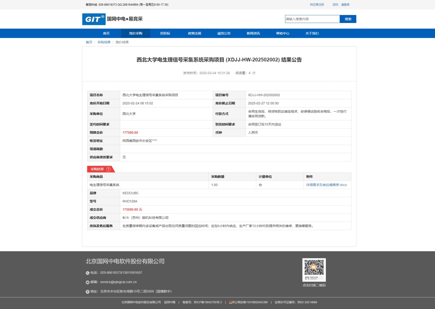 乐动网页版登录入口电生理信号采集系统采购项目 (XDJJ-HW-202502002) 竞价结果公告 作者: 编辑:采购与招标办公室 时间:2025-03-04 原公告链接:https://www.ejingcai.com.cn/site/bidding/detail/16713