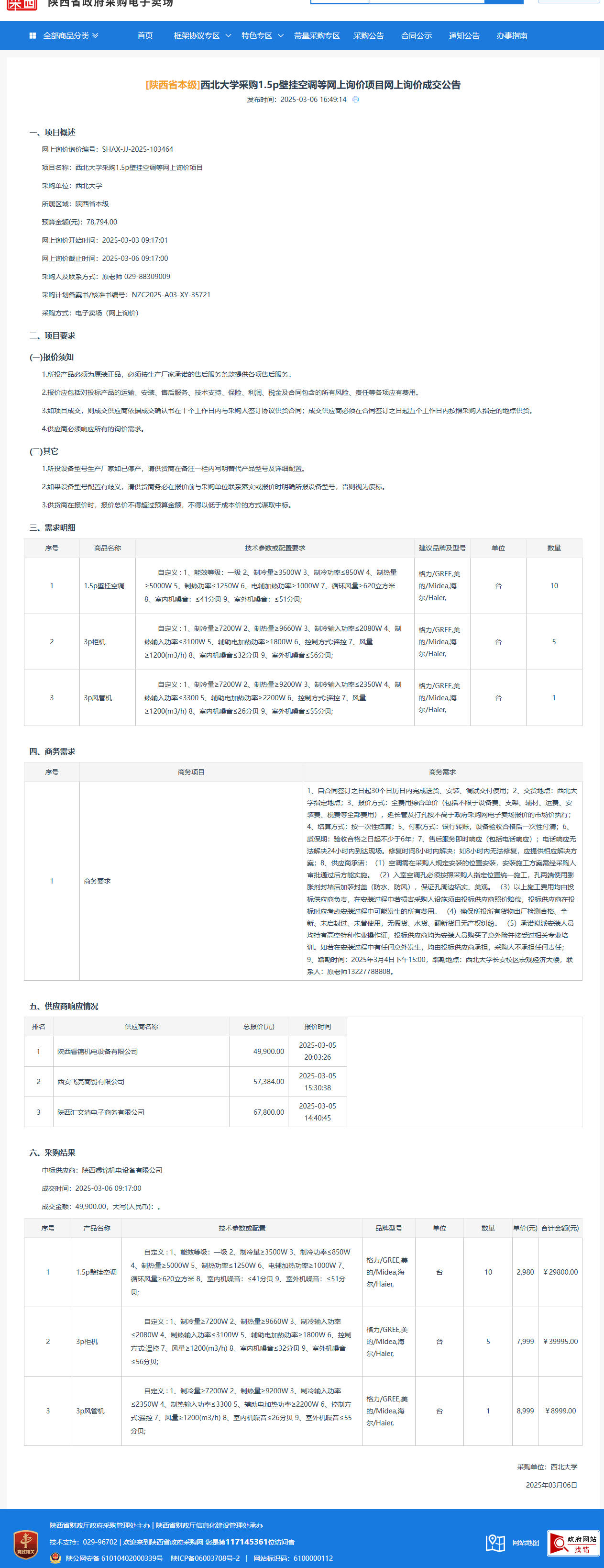 乐动网页版登录入口采购1.5p壁挂空调等网上询价项目(网上询价)成交公告 作者:采购与招标办公室 编辑: 时间:2025-03-06 原公告链接:https://www.ccgp-shaanxi.gov.cn/gpmall-main-web/basic/noticeDetail?noticeGuid=7296717914839908352