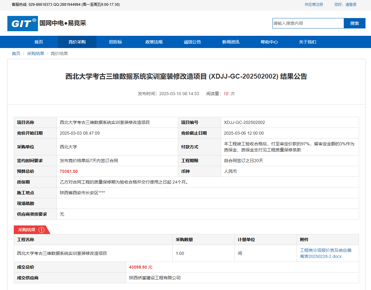 乐动网页版登录入口考古三维数据系统实训室装修改造项目(XDJJ-GC-202502002)竞价结果公告 作者:采购与招标办公室 编辑: 时间:2025-03-10 原公告链接:https://www.ejingcai.com.cn/site/bidding/detail/16795