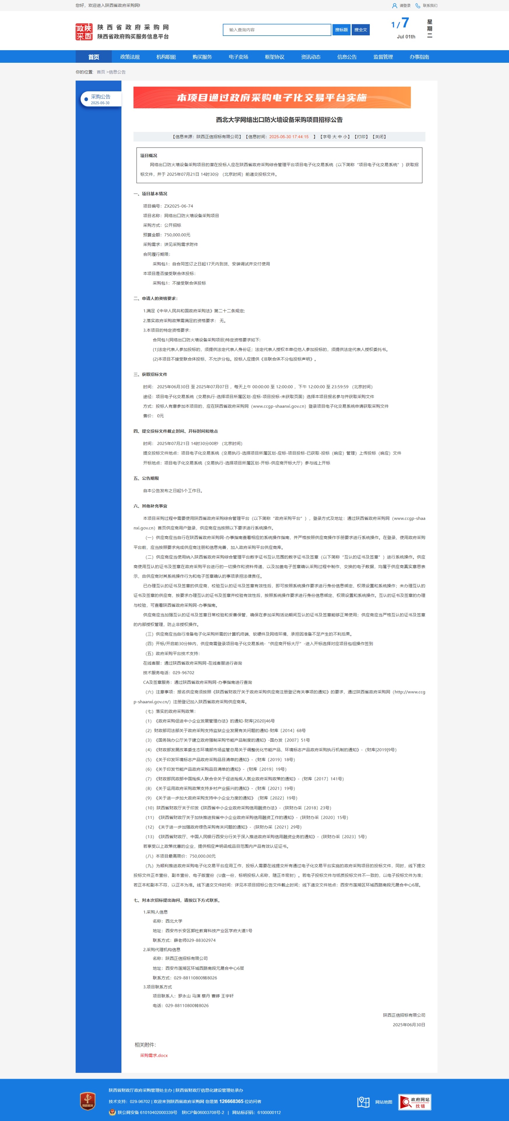 乐动网页版登录入口网络出口防火墙设备采购项目招标公告 作者: 编辑:采购与招标办公室 时间:2025-07-01 原公告链接:https://www.ccgp-shaanxi.gov.cn/freecms/site/shaanxi/ggxx/info/2025/8a69c2ef97af7dd30197c01b7ca54817.html?noticeType=001011¬iceId=c6225ff7-5598-11f0-8063-08c0eb20c666