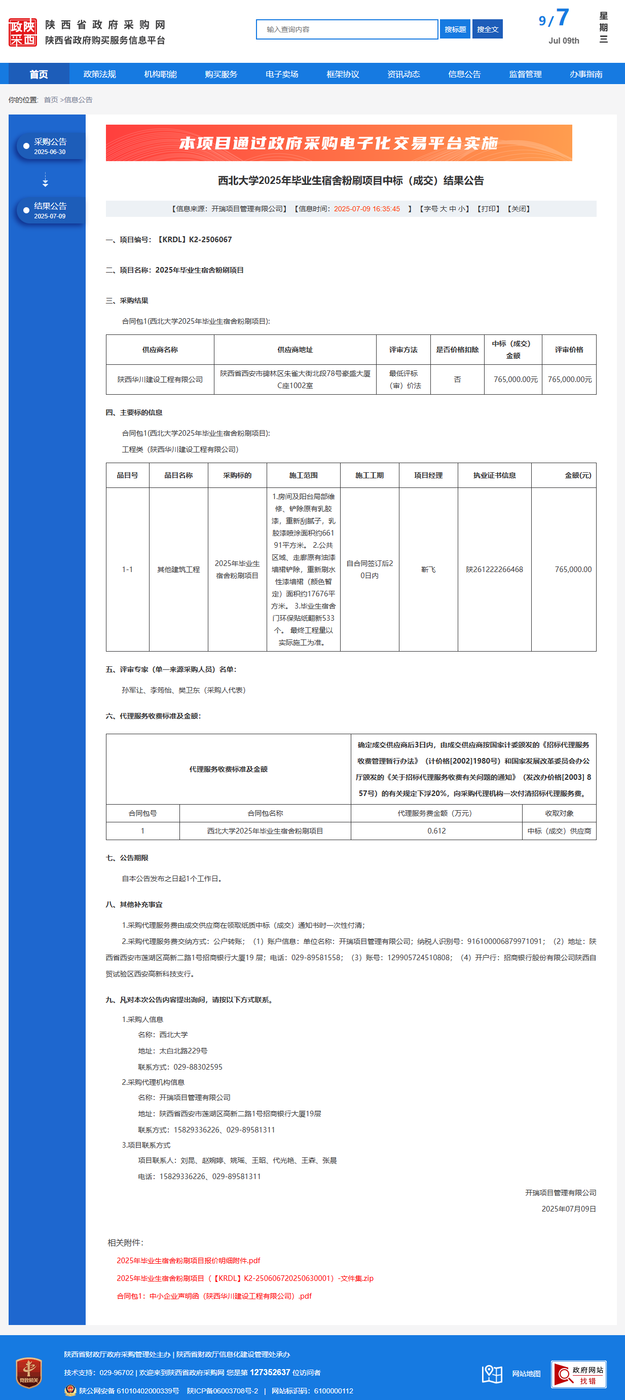 乐动网页版登录入口2025年毕业生宿舍粉刷项目中标(成交)结果公告