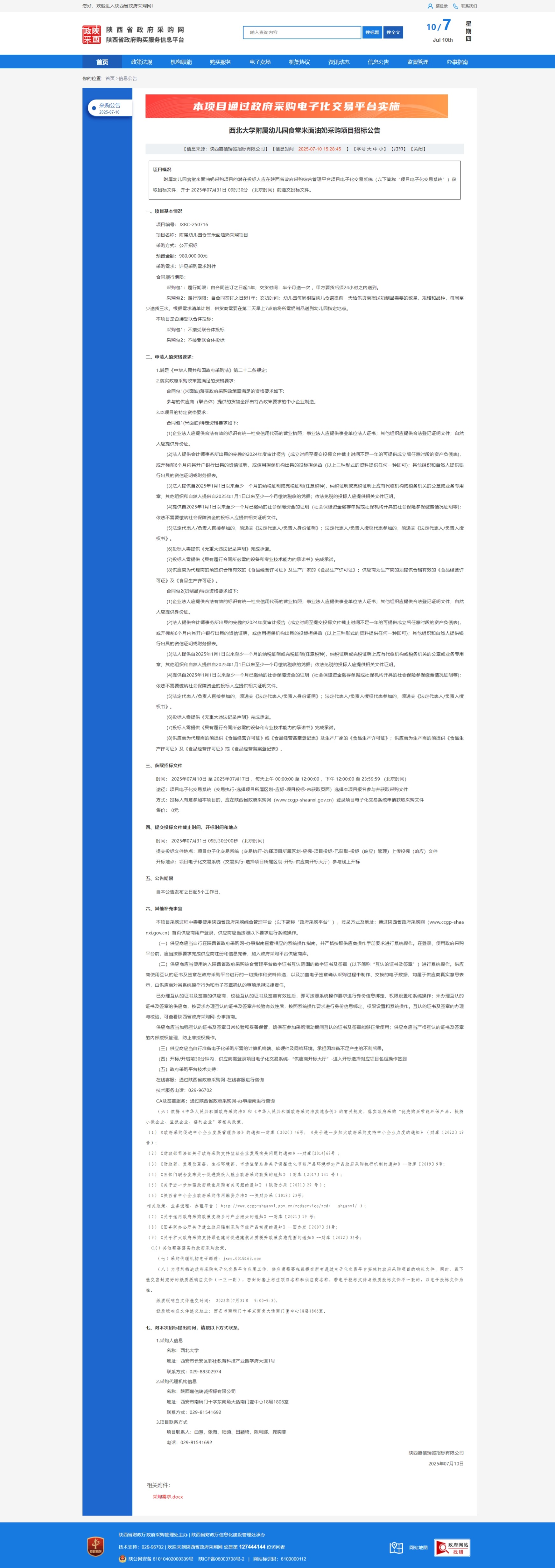 乐动网页版登录入口附属幼儿园食堂米面油奶采购项目招标公告 作者: 编辑:采购与招标办公室 时间:2025-07-10 原公告链接:https://www.ccgp-shaanxi.gov.cn/freecms/site/shaanxi/ggxx/info/2025/8a69c68e97dc6ae40197f338006c4fdc.html?noticeType=001011¬iceId=84a12ca4-5d61-11f0-8063-08c0eb20c666