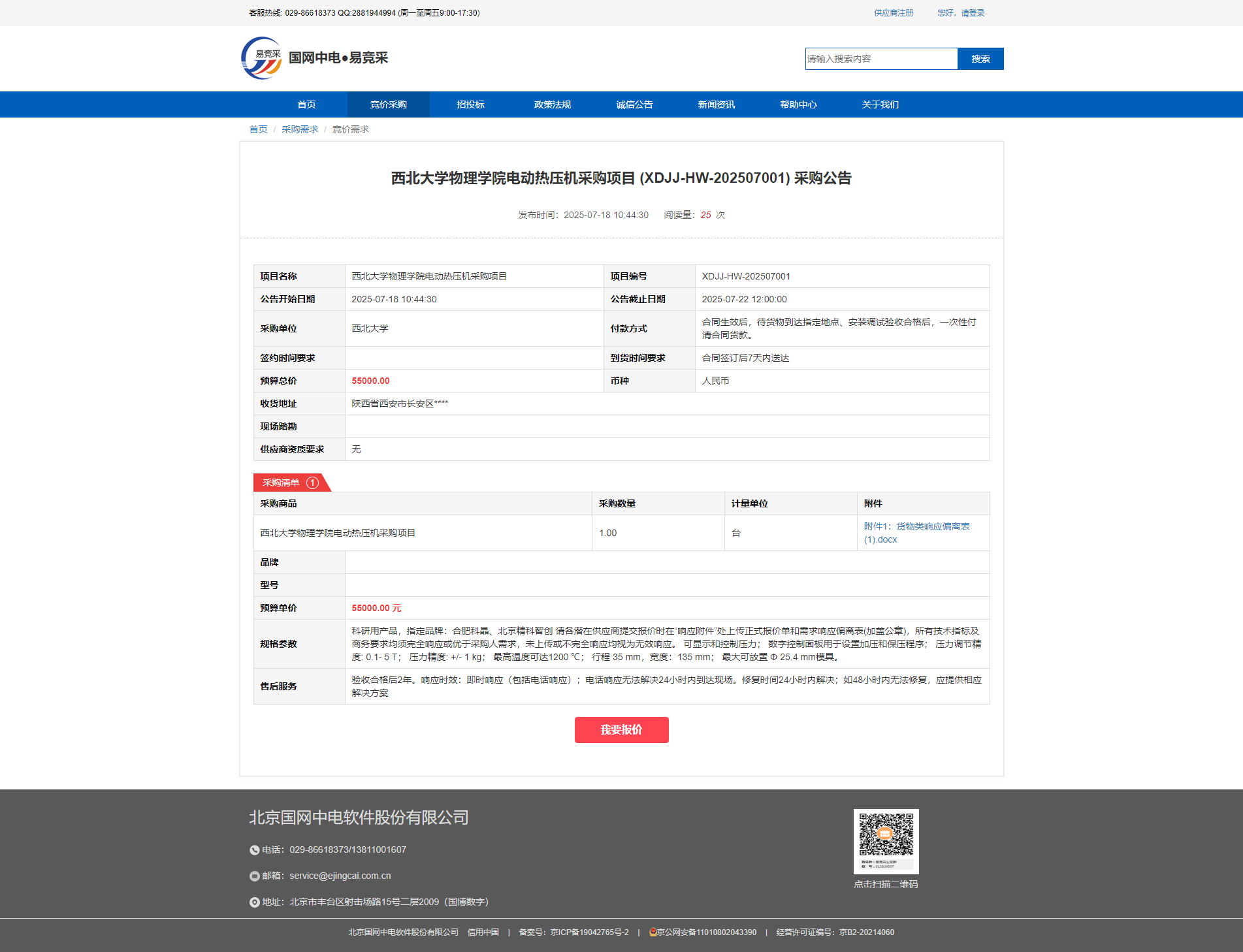 乐动网页版登录入口物理学院电动热压机采购项目(XDJJ-HW-202507001)竞价采购公告