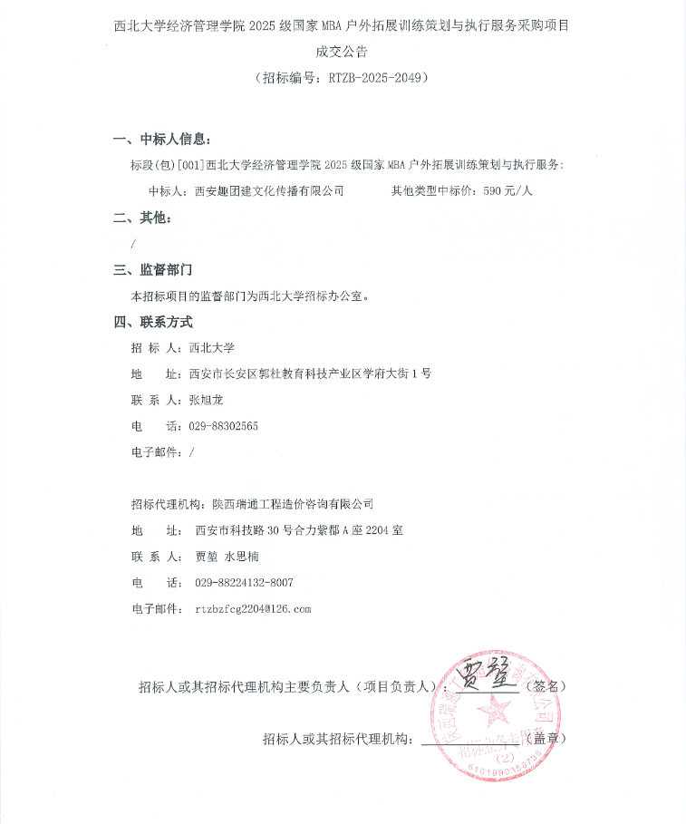 乐动网页版登录入口经济管理学院2025级国家MBA户外拓展训练策划与执行服务采购项目成交公告