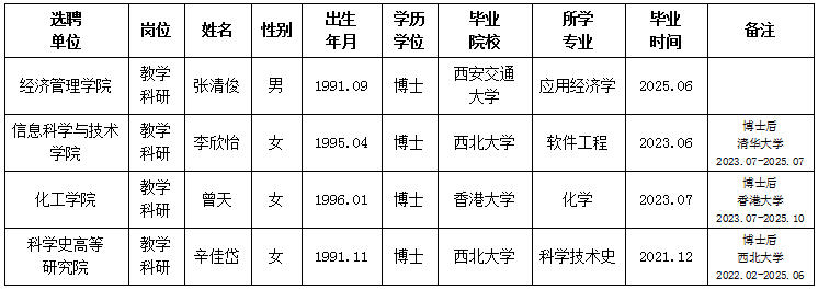 关于教学科研单位选聘教师情况的公示