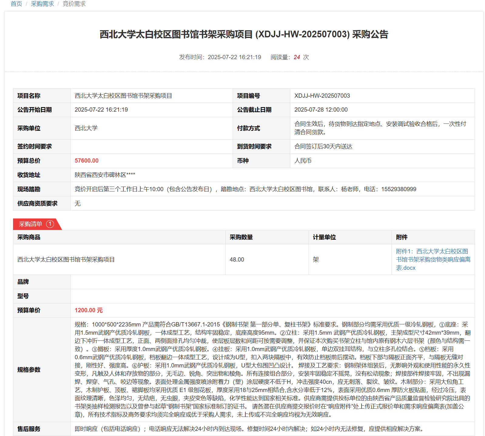 乐动网页版登录入口太白校区图书馆书架采购项目(XDJJ-HW-202507003)竞价采购公告 作者:采购与招标办公室 编辑: 时间:2025-07-22 原公告链接:https://www.ejingcai.com.cn/site/bidding/detail/19666