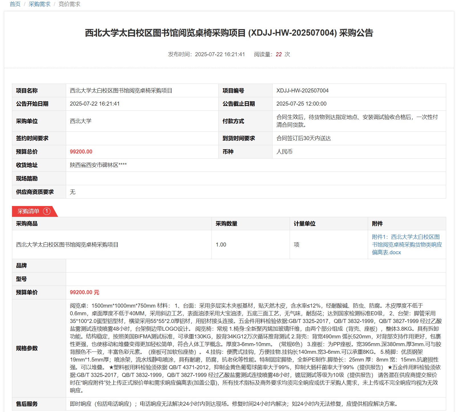 乐动网页版登录入口太白校区图书馆阅览桌椅采购项目(XDJJ-HW-202507004)竞价采购公告 作者:采购与招标办公室 编辑: 时间:2025-07-22 原公告链接:https://www.ejingcai.com.cn/site/bidding/detail/19667