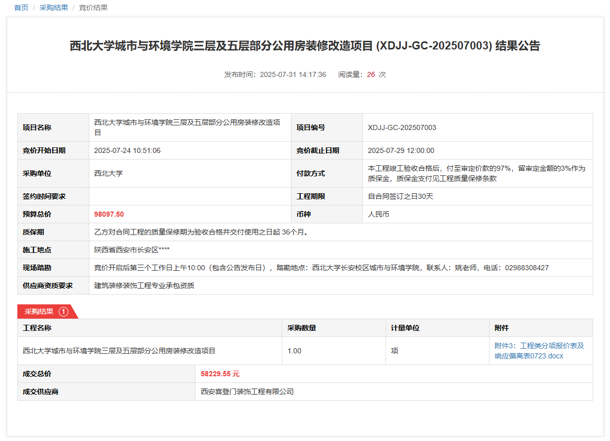 乐动网页版登录入口经济管理学院mba9804班智慧教室设备采购项目 (XDJJ-HW-202507005) 竞价结果公告