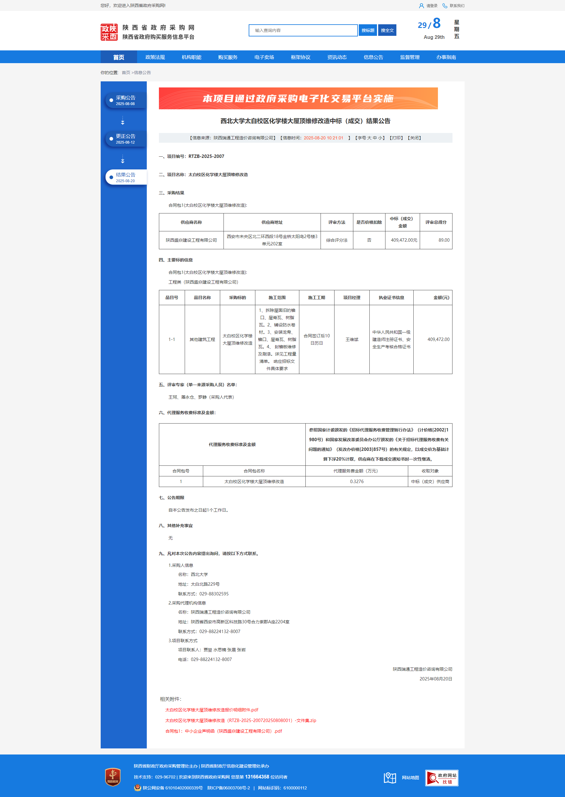 乐动网页版登录入口太白校区化学楼大屋顶维修改造中标(成交)结果公告