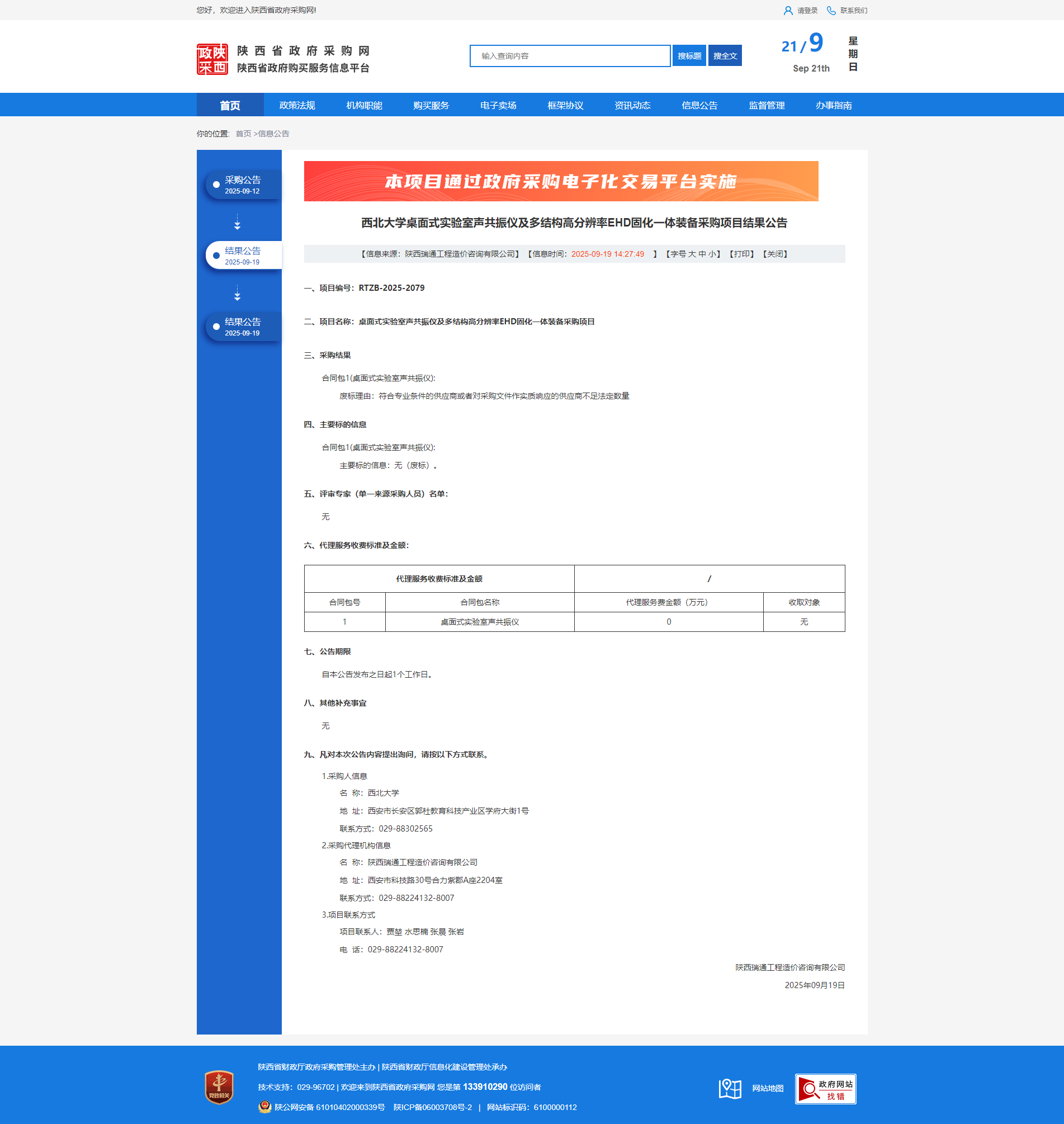 乐动网页版登录入口桌面式实验室声共振仪及多结构高分辨率EHD固化一体装备采购项目中标(成交)结果公告