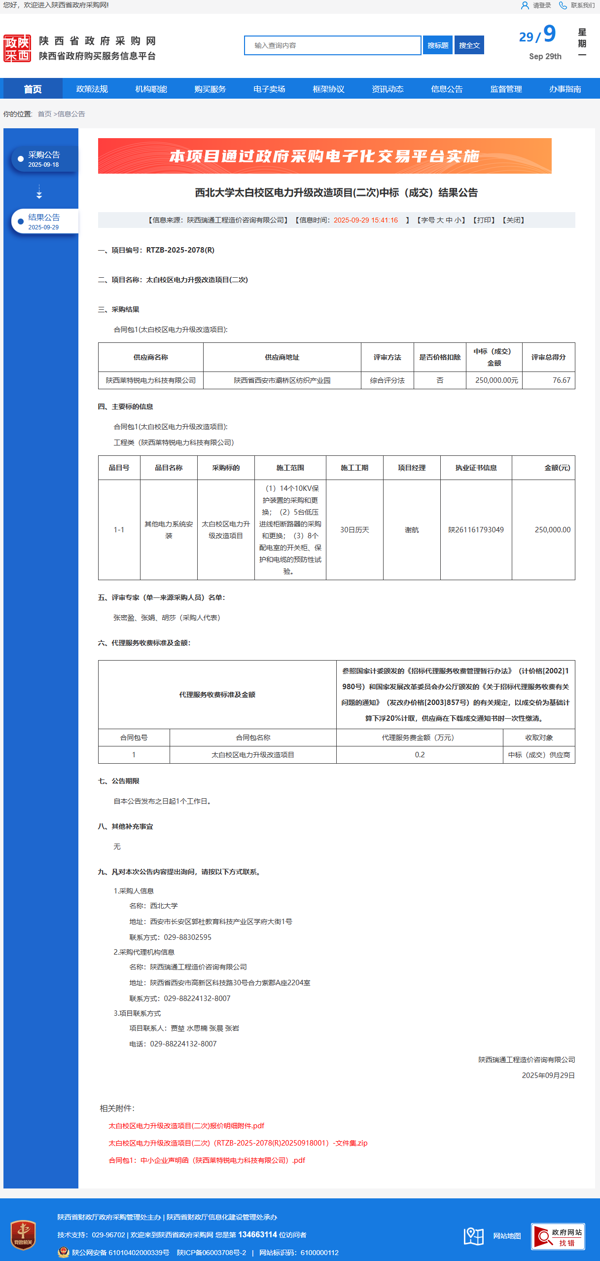 乐动网页版登录入口太白校区电力升级改造项目(二次)中标(成交)结果公告