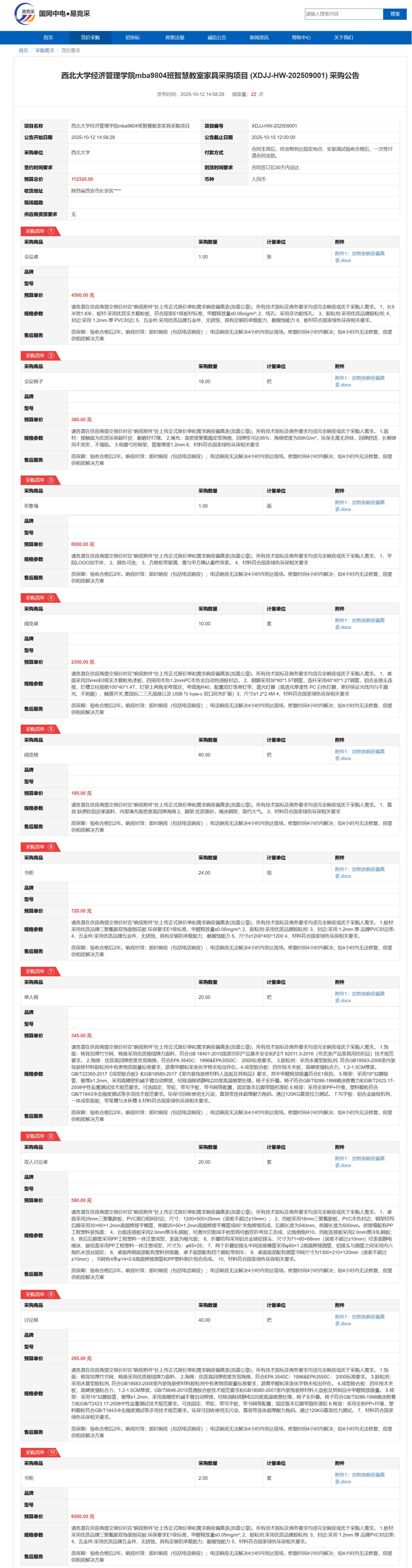 乐动网页版登录入口经济管理学院mba9804班智慧教室家具采购项目(XDJJ-HW-202509001)竞价采购公告