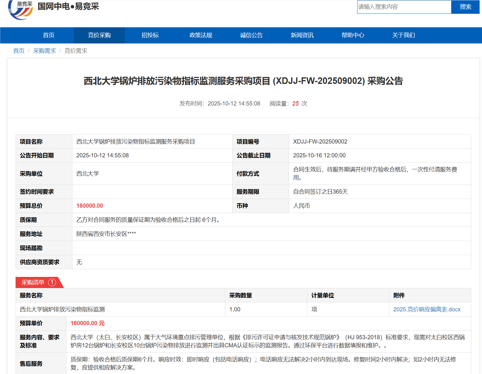 乐动网页版登录入口锅炉排放污染物指标监测服务采购项目(XDJJ-FW-202509002)竞价采购公告