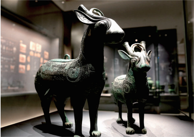 陕西考古博物馆展出的宝鸡石鼓山商周墓地出土的牺尊新华社供图