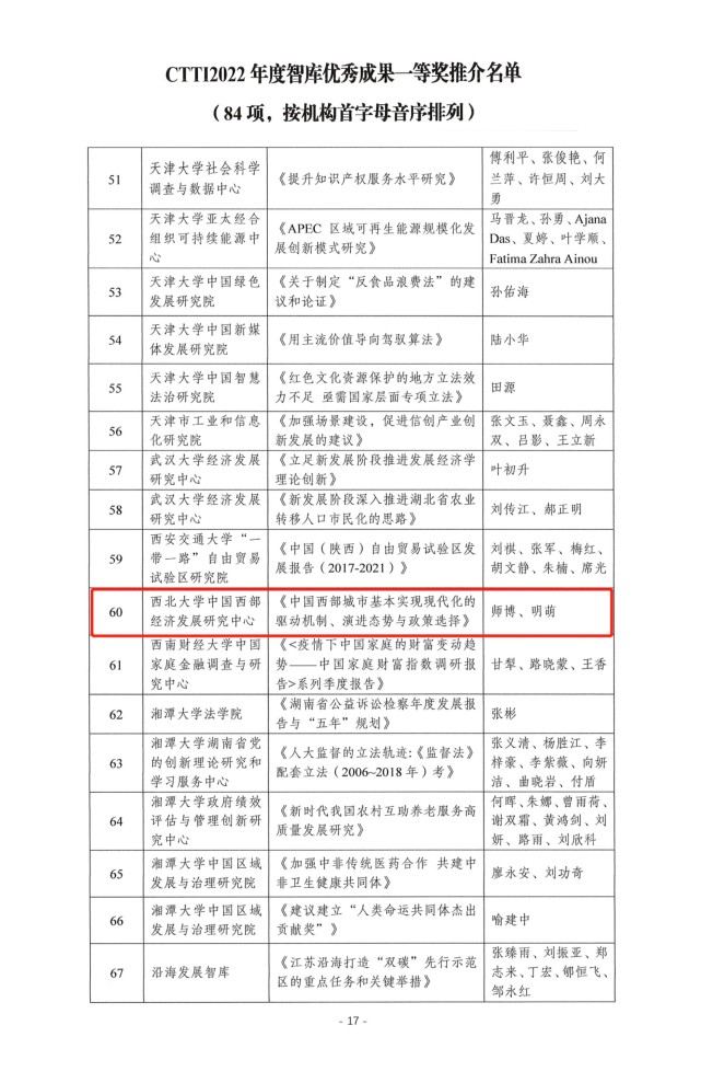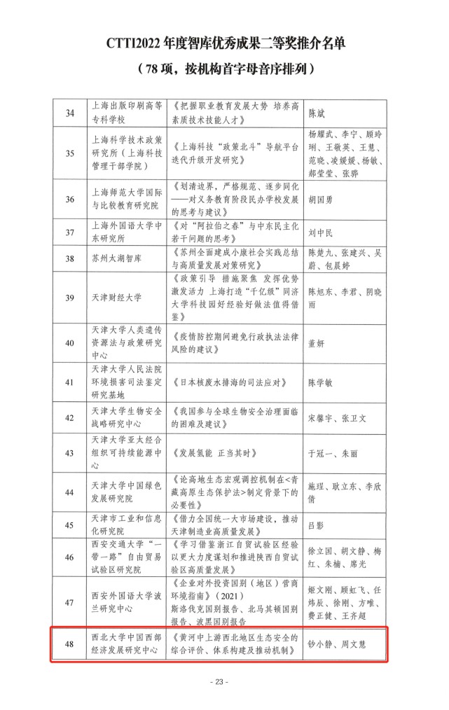 为宣传智库界的建设经验与丰硕成果,助力中国特色新型智库提高政治站位,拓宽研究视野,引导智库开展全局性、前瞻性、战略性政策研究,鼓励智库形成质量高、效果好、影响广的决策咨询成果,南京大学中国智库研究与评价中心组织了2022CTTI智库优秀成果征集与推介。乐动网页版登录入口中国西部经济发展研究中心师博教授和钞小静教授的成果分获一等奖和二等奖。