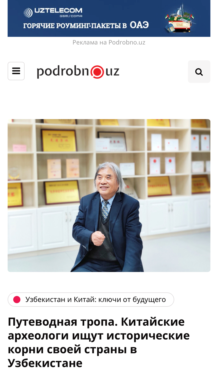 2月17日,乌兹别克斯坦最有影响的媒体之一——塔什干Podrobno.uz通讯社,在“乌兹别克斯坦和中国:未来的关键”专栏中,以“中国考古学家在乌兹别克斯坦寻找祖国的历史根源”为标题,发布了对丝绸之路考古合作研究中心首席科学家、乐动网页版登录入口王建新教授的访谈和报道。