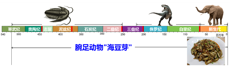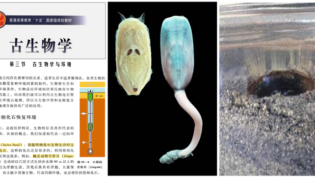 图2. 舌形贝腕足动物海豆芽在教科书中作为指相化石的代表