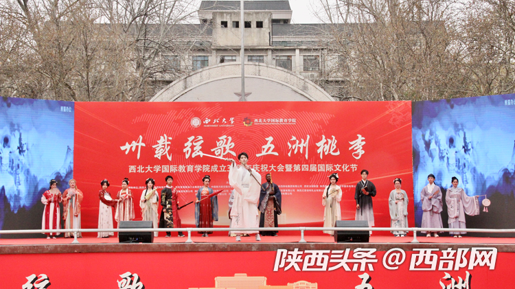 庆祝大会上开启了乐动网页版登录入口第四届国际文化节,内容包括国别展览和文艺表演。来自22个不同国家的留学生们向现场嘉宾们展示了世界各地的风景、服饰、艺术品、美食、音乐等,呈现了不同国家的文化特色和风土人情。舞台上,留学生进行了情景剧、舞蹈、歌曲串烧和汉服表演,西安易俗社还进行了精彩的秦腔表演。