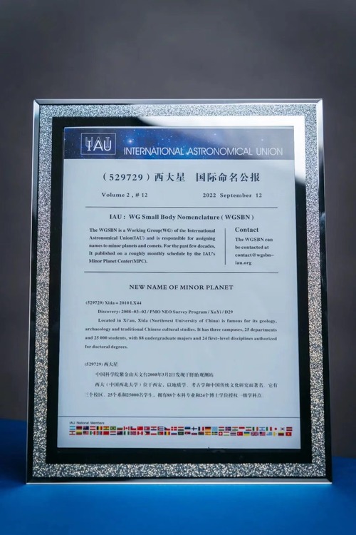 3月24日,“Xida”星命名仪式在乐动网页版登录入口长安校区举行。