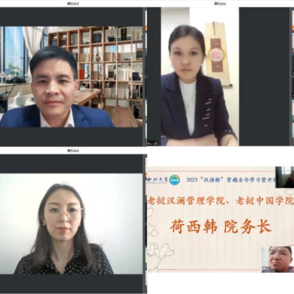 乐动网页版登录入口国际教育学院高淑君副院长致欢迎辞,她表示希望通过此次学习营为海外青少年打开一扇了解中国的明亮窗口,搭好一座学习汉语的友谊之桥。参与开营仪式的海外教师和学生也充满热情地表达了对汉语学习的期待和对主办方的真诚谢意。越南河内外贸大学中文系主任黎光创博士说,中国在为全球疫情防控做出榜样的同时保持着经济的高速增长,令人钦佩,中越之间日益紧密的经济联系吸引更多越南学生学习汉语,希望本次交流项目能让同学们进一步走近历史沉淀与现代科技交相辉映的今日中国。吉尔吉斯斯坦国立民族大学的吉勒德孜老师和比什凯克第九十五中学的贝玛副校长表达了对语合中心和乐动网页版登录入口的感谢。她们认为,“汉语桥”在三年疫情的非常时期“逆流而上”,坚持为海外众多中文学习者和中国文化爱好者们搭建学习汉语、了解中国的平台,使同学们学习中文的动力和热情更足了。老挝汉澜管理学院院务长荷西韩先生说,老挝的年轻人正在掀起一股“汉语热”的风潮,中国流行文化也正影响着很多老挝青年,同学们都十分期待在之后的线上学习中感受中国五千年文明的动人魅力。