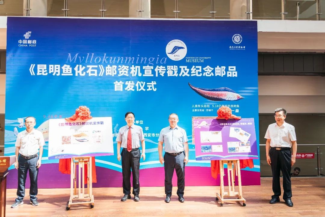 5月18日上午,“昆明鱼化石”邮资机宣传戳及系列纪念邮品在乐动网页版登录入口博物馆首发。“昆明鱼”化石的发现者、中国科学院院士、乐动网页版登录入口博物馆馆长舒德干,校党委常委、副校长常江,校党委常委、宣传部部长田明纲,中国邮政集团有限公司西安市分公司副总经理李卫国共同为《昆明鱼化石》邮资机宣传戳及纪念邮品揭幕。