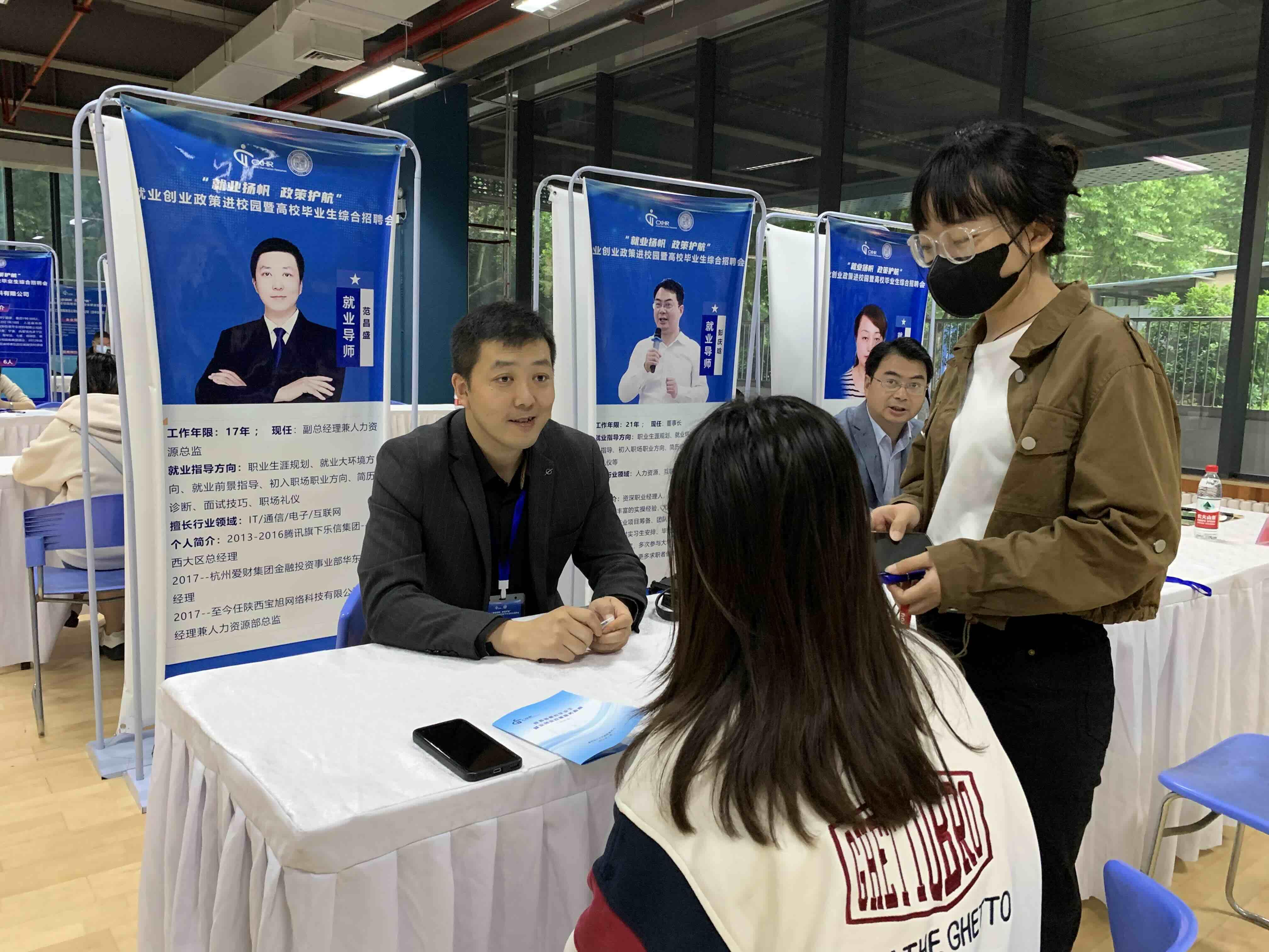 招聘会现场还设立职业指导、就业创业政策解读专区,邀请多名导师对求职者进行一对一职业规划、面试礼仪、求职技巧等指导。
