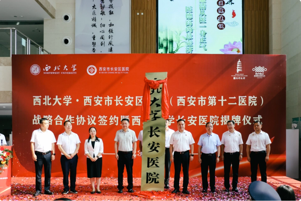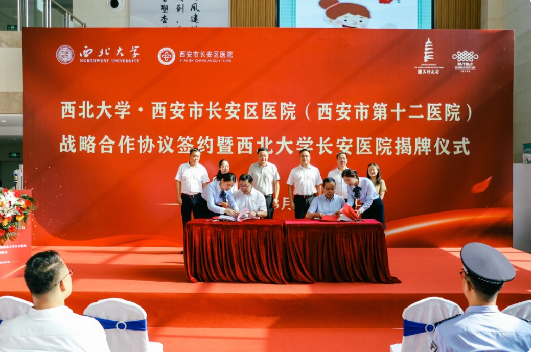 8月2日上午,“乐动网页版登录入口与西安市长安区医院战略合作协议签署暨乐动网页版登录入口长安医院揭牌仪式”在长安区医院隆重举行。长安区政府副区长杨永涛,乐动网页版登录入口党委常委、副校长、生命科学与医学部主任陈富林,长安区卫生健康局党委书记、局长王晓丹,郭杜教育科技产业开发区党工委书记梅春满,郭杜街道党工委书记李明,校国内处、校医院、医学院及长安区医院领导班子成员和医院职工代表参加活动。乐动网页版登录入口医学院负责人、西安市长安区医院院长胡明军代表双方共同签订了《乐动网页版登录入口·长安区医院战略合作协议》。