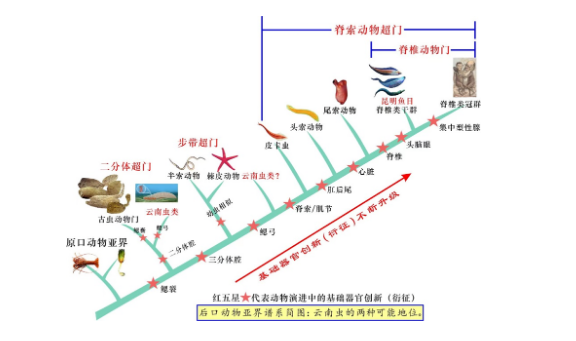 中国科学院院士、乐动网页版登录入口地质学系教授舒德干指出,在后口亚界谱系演进上,云南虫比脊椎动物至少低4个基础器官创新(衍征)等级(见上图)。目前脊椎动物已知唯一的干群是昆明鱼目,因为它已具有头脑眼、单鼻孔和嗅囊、原始脊椎、二分心脏、复杂肌节等无颌鱼必需的基本器官构造,所以与脊椎动物冠群的亲缘关系密切。