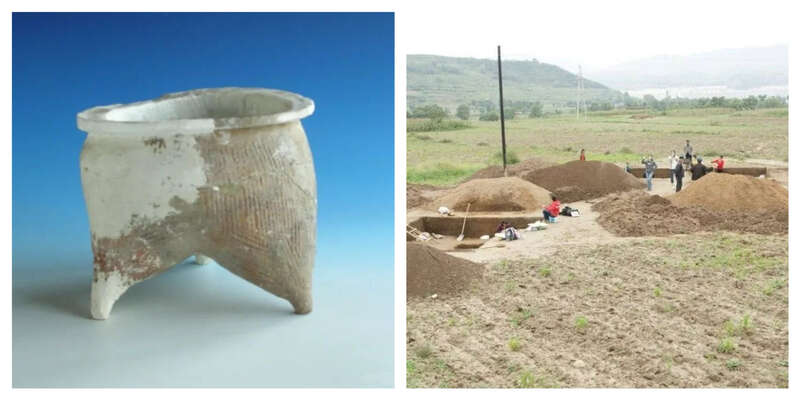 左图为李崖遗址出土陶鬲;右图为李崖遗址发掘现场。乐动网页版登录入口供图