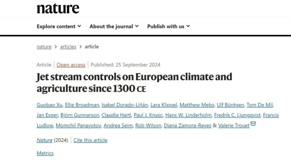 北京时间9月25日23时,乐动网页版登录入口城市与环境学院徐国保教授以第一作者身份在国际顶尖期刊Nature(《自然》)发表长文“Jet stream controls on European climate and agriculture since 1300 CE”(大气急流影响了欧洲七个世纪的极端事件)。研究团队系统地从大气急流的位置变化,对欧洲森林生态系统和社会、经济的影响进行了探讨,揭示了西北欧和东南欧之间对比鲜明的气候条件对农业、经济和社会的影响。