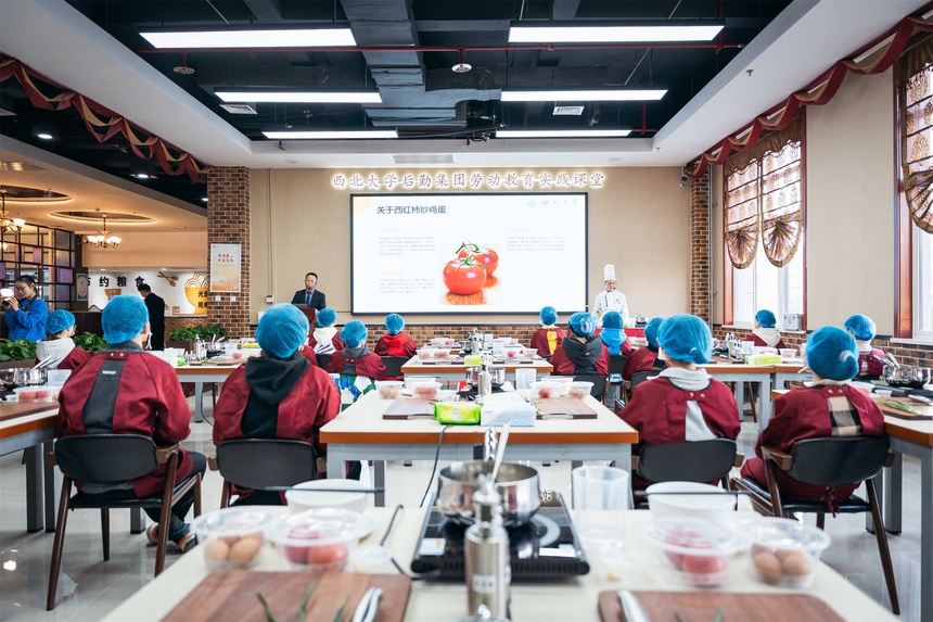 从零开始,收获满满。烹饪课从准备工作开始,同学们需要穿上围裙、戴好口罩和帽子,然后在水池中洗手,养成良好的厨房卫生习惯。在餐厅经理的带领下,同学们认识食材、熟悉烹饪流程,跟随食堂厨师的讲授,一步步制作出美味的菜品。