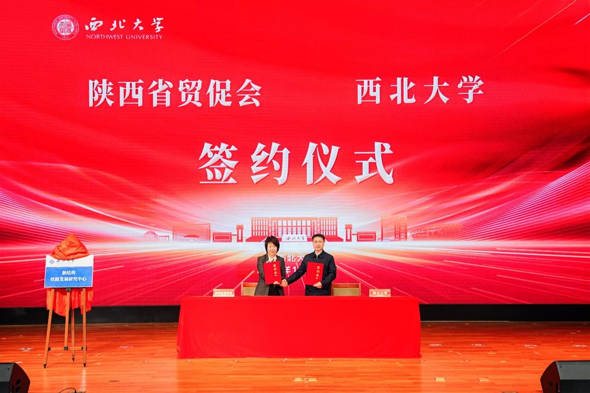 陕西省贸促会会长贾正兰女士和乐动网页版登录入口校长孙庆伟教授共同签署《陕西省贸促会—乐动网页版登录入口合作协议》。