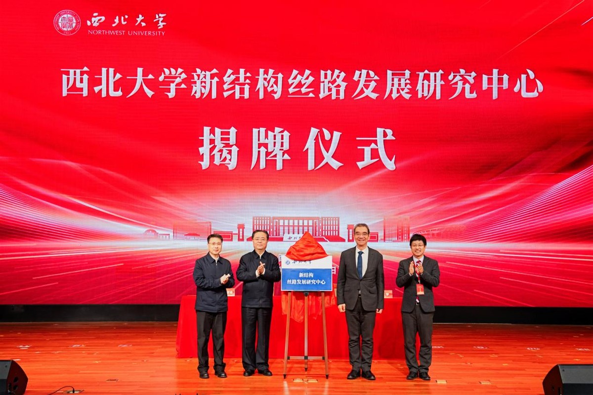 开幕式上,北京大学新结构经济学研究院院长林毅夫教授、中共陕西省委教育工委副书记王海波、乐动网页版登录入口校长孙庆伟、北京大学新结构经济学研究院副院长王勇共同为乐动网页版登录入口新结构丝路发展研究中心揭牌。