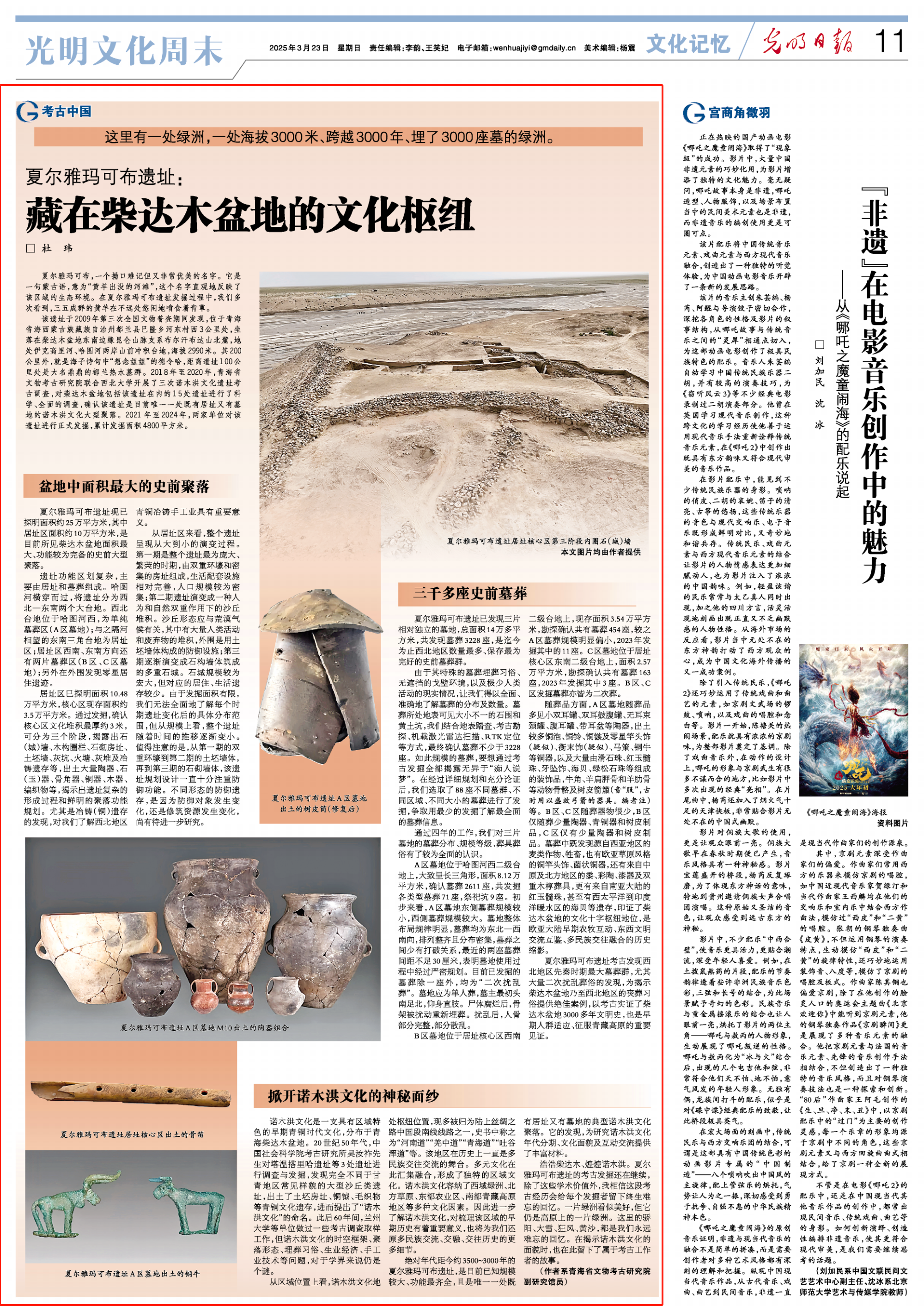 绝对年代距今约3500~3000年的夏尔雅玛可布遗址,是目前已知规模较大、功能最齐全,且是唯一一处既有居址又有墓地的典型诺木洪文化聚落。它的发现,为研究诺木洪文化年代分期、文化面貌及互动交流提供了丰富材料。