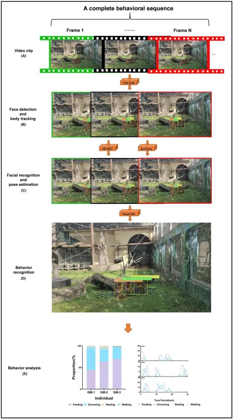 郭松涛表示,该技术可广泛应用于圈养动物日常活动规律监测和关键行为异常预警、野生动物行为数据分析和习性研究、实验动物健康状态和福利监测,甚至对人类自身的行为特征和健康状态进行监测分析。