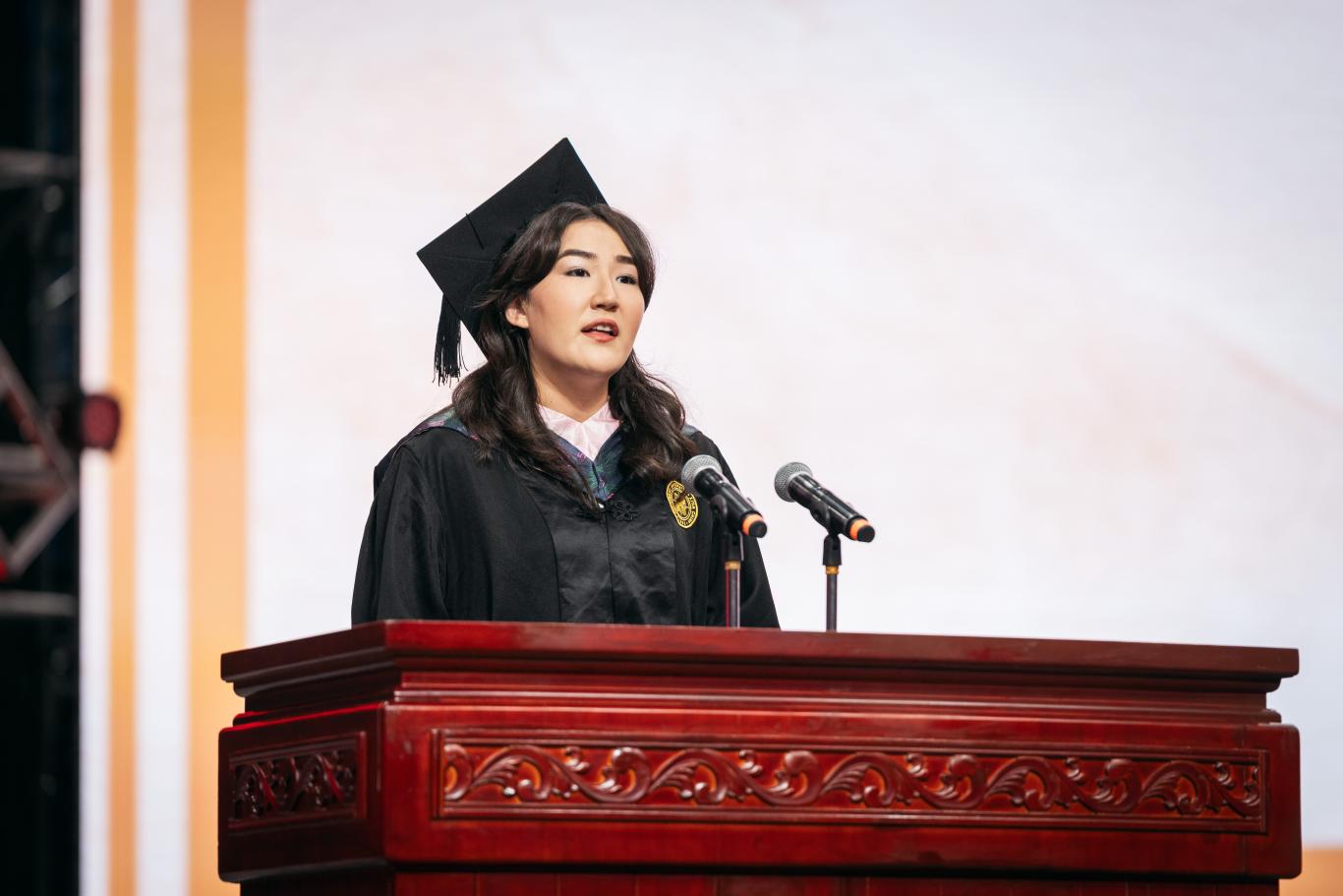 艾小情作为留学生代表在乐动网页版登录入口毕业典礼发言