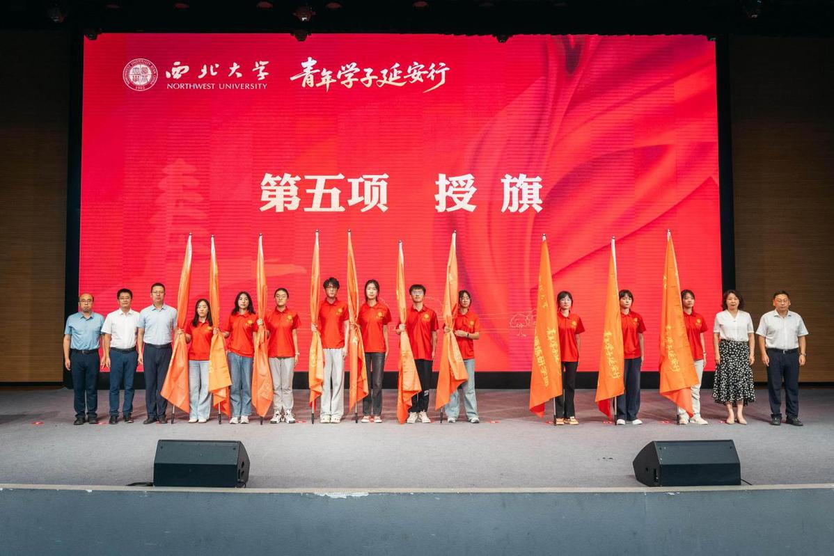 活动中,蒋林和与会部门负责人为“乐动网页版登录入口青年学子延安行”研学团和10个班级代表授旗。