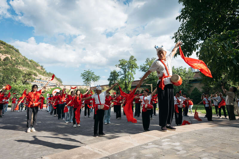 学生们实地体验并感受安塞腰鼓风采。乐动网页版登录入口/供图