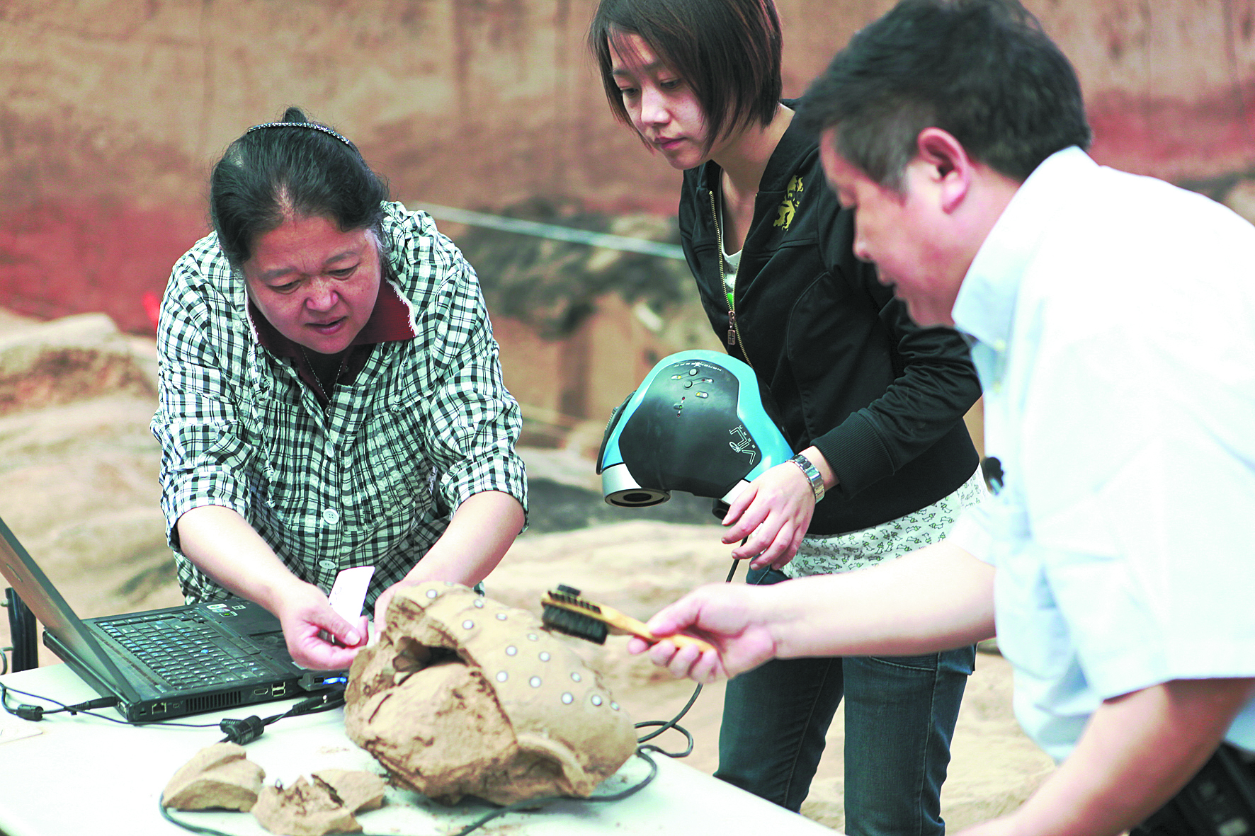 1997年,耿国华及团队率先在国内开展了文物数字化和文物虚拟修复相关技术研究。为了更好解决瓷器等文物高反光问题,团队在1996年研制的第一代点状激光扫描仪的基础上,升级研制了第二代复曝光真彩扫描仪。为适应博物馆文物原真建模的迫切需求,团队研发的第三代自动化智能扫描设备,将采集时间从数小时缩短至分钟级,实现了智能扫描、协同工作、高精度和数据安全,该设备已在中国国家博物馆应用,为文物快速建模提供了重要利器。